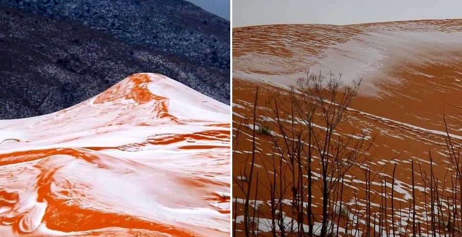뜨거운 태양 아래 들끓는 불모의 땅 '사하라 사막'에 눈이 내리면서 사람들의 관심을 받고있다.