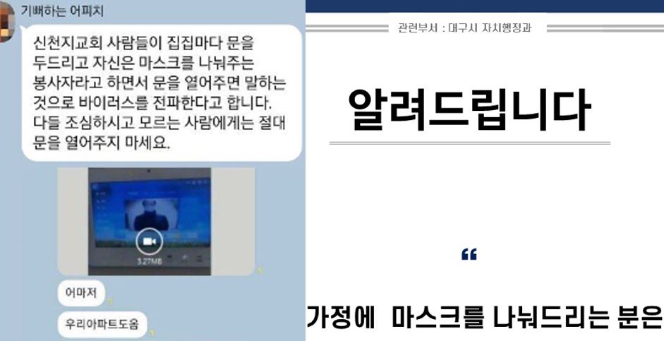 항간에 떠돌던 '신천지 괴담'의 주인공이 마스크 배부 중이던 공무원이라는 사실이 밝혀졌다.