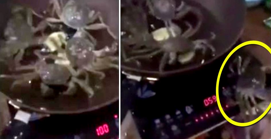 펄펄 끓어오르는 냄비에 오른 4마리의 게. 이 중 가장 용감한 게가 냄비를 뛰쳐나가 불을 끄는 진기한 광경이 벌어졌다.