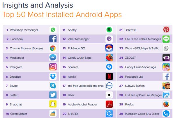 한편 페이스북은 가장 많이 깔려있는 앱 2위에 오르기도 했다. 페이스북 메시지 앱은 4위에 올랐다. 1위는 왓츠앱 메신저 앱이었다.