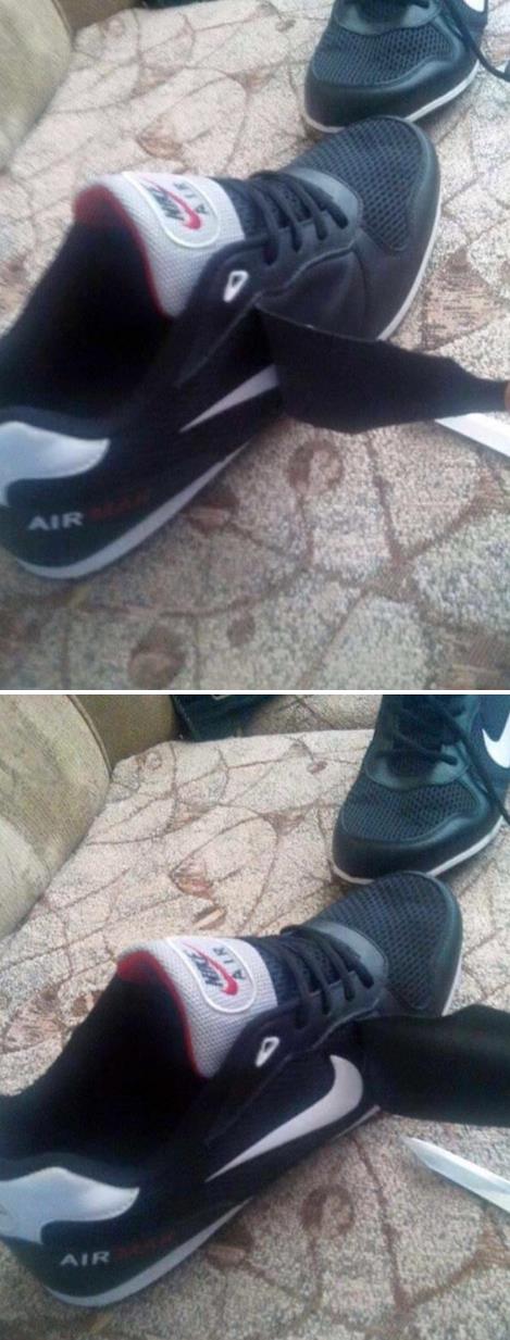 놀랍게도 사진 속 운동화는 상표를 떼면 유명 스포츠 용품 브랜드 '나이키'의 신발로 변신한다. 게시물 작성자는 이러한 변신을 "무명 브랜드의 저가 운동화가 고가의 나이키 운동화로 변화하는 기적"이라고 표현했다.