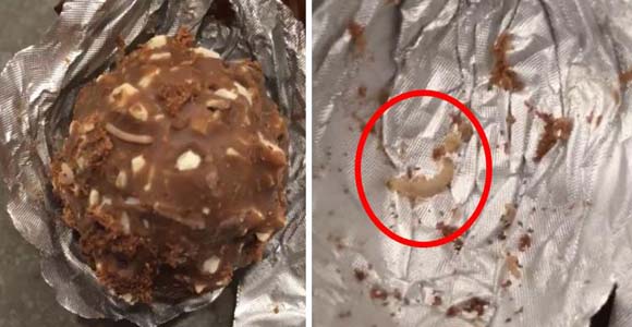 그는 먹던 초콜릿을 뱉은 뒤 살펴봤지만 특별히 눈에 띄는 이상한 점을 발견하진 못했다. 하지만 다른 초콜릿을 개봉한 순간 그는 경악할 수밖에 없었다. 구더기가 초콜릿 표면에 붙어 꿈틀거리고 있었기 때문.