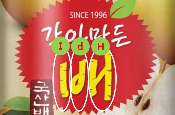 '갈아만든 배'가 'IdH'라고 불리는 이유는 한글을 모르는 외국인들이 '배'라는 글자를 자음과 모음으로 분리하면 알파벳의 l, d, H 로 보이기 때문.