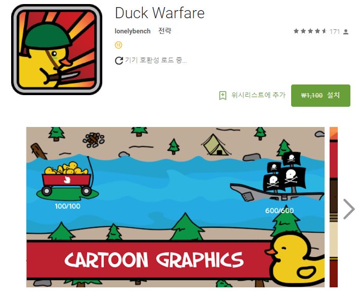 귀여운 오리가 전쟁을 하는 'Duck Warfare'은 귀여운 아케이드 게임으로 원래는 1,100원 가격으로 판매됐지만 현재는 무료로 이용할 수 있다.