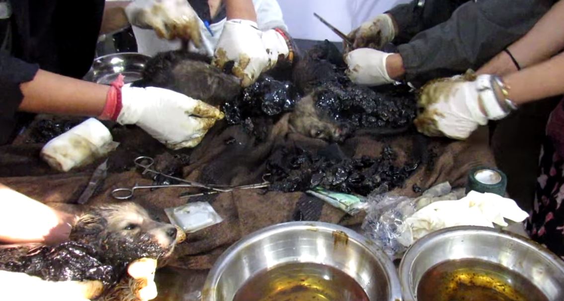 단체는 곧바로 강아지들을 빼 내려 했으나 타르의 끈적임 때문에 쉽지 않았다.