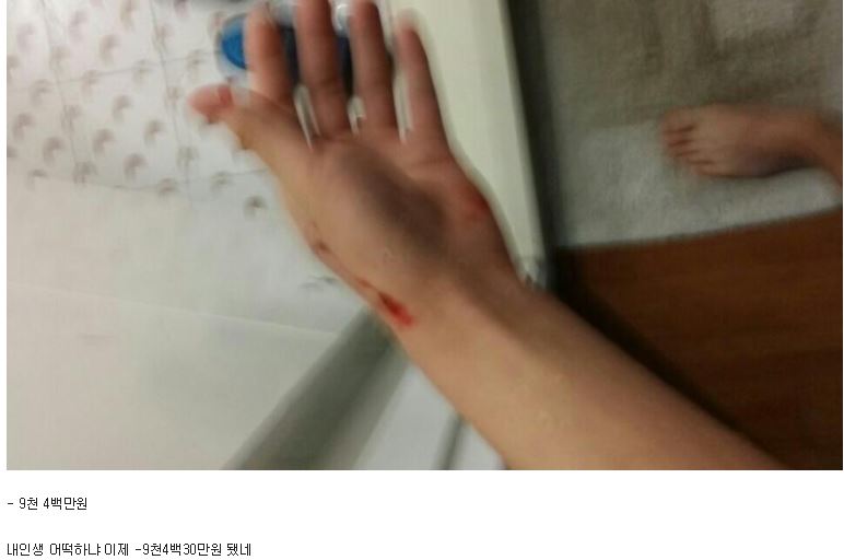 한 투자자는 “세면대 부수고 손이 부들부들 떨린다. 내 인생 어떡하냐”며 세면대를 부순 사진과 함께 피를 흘린 손 사진을 게재했다.