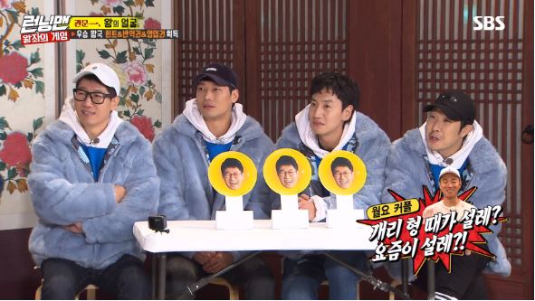 김종국(42), 고아라, 정일우와 팀을 이뤄 게임을 하던 송지효는 하하에게 "개리형 때가 설레? 요즘이 설레?"라는 질문을 받았다.