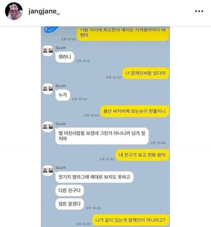 이어 남태현에게 그가 장재인과 영화관에 함께 있는 모습을 봤다는 지인들 말을 전했다.