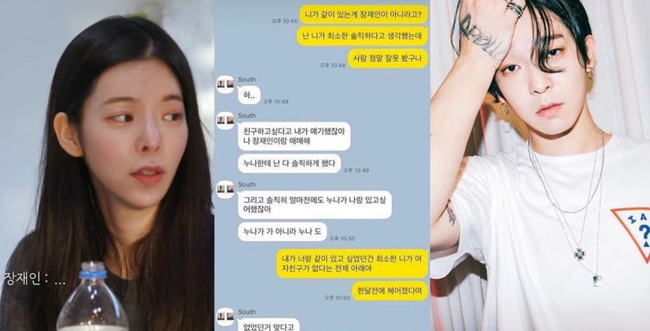 이에 남태현은 "그런 거 아니니까 넘겨짚지 마"라며 "나 장재인이랑 애매해. 누나한테 난 다 솔직하게 했다. 얼마 전에도 누나도 나랑 있고 싶어 했잖아"라고 답했다.