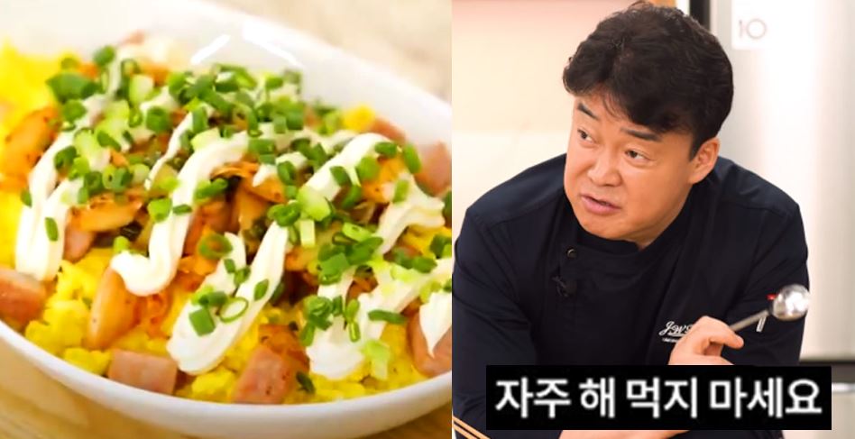 백종원이 유튜브로 중독성 넘치는 '스팸 마요 김치덮밥' 레시피를 소개했다.