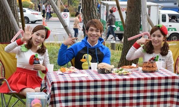 이날 한위싱동타이 녹화장에는 크레용팝의 유닛 딸기우유(초아, 웨이)가 MC 플레이제이의 스타 인터뷰에 참여했다. 러버덕과 함께 석촌호수에서 진행된 한위싱동타이는 야외에서 대형 고무오리 '러버덕' 과 크레용팝의 색다른 콜라보레이션(?)과 함께 즐거운 먹방 데이트가 펼쳐졌다.