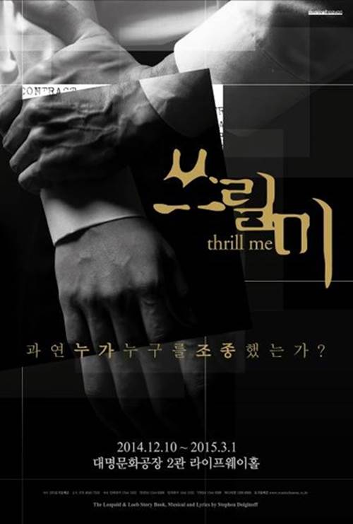 뮤지컬 '쓰릴 미'는 1924년 시카고에서 일어난 전대미문의 살인사건을 바탕으로 한 뮤지컬. 37년 전 일어났던 범죄 사건에 대해 가해자인 '나'가 모든 일을 풀어놓는 과정을 그렸다. 2007년 초연 이후 높은 예매율을 기록하며 인기를 얻어왔다.