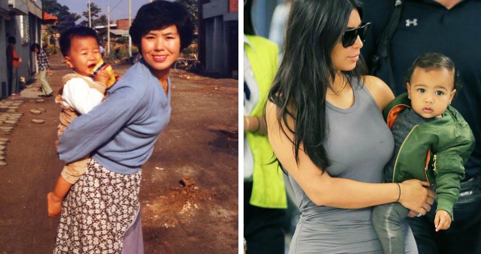 킴카다시안과 미란다커의 모습을 보면 매우 편안해보이는 것을 알 수 있는데요, 최근 동양의 엄마들도 이 자세를 애용하시는 분들이 은근 많아졌습니다.