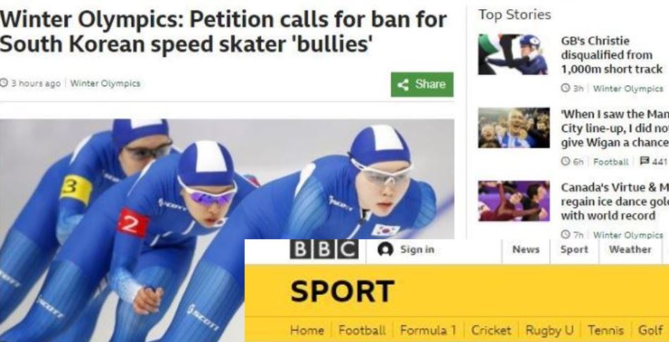 평창 동계올림픽 팀추월 경기에서 '왕따' 논란으로 비난의 화살을 받고 있는 김보름·박지우 선수가 해외 언론으로부터 '불량배'라는 평가를 받았다.