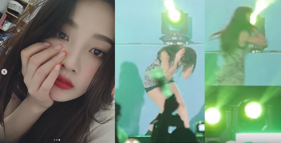 레드벨벳 조이(박수영, 22)가 눈앞에서 터진 폭죽을 참고 무대를 이어나가 네티즌들의 안쓰러움과 박수를 동시에 자아냈다.